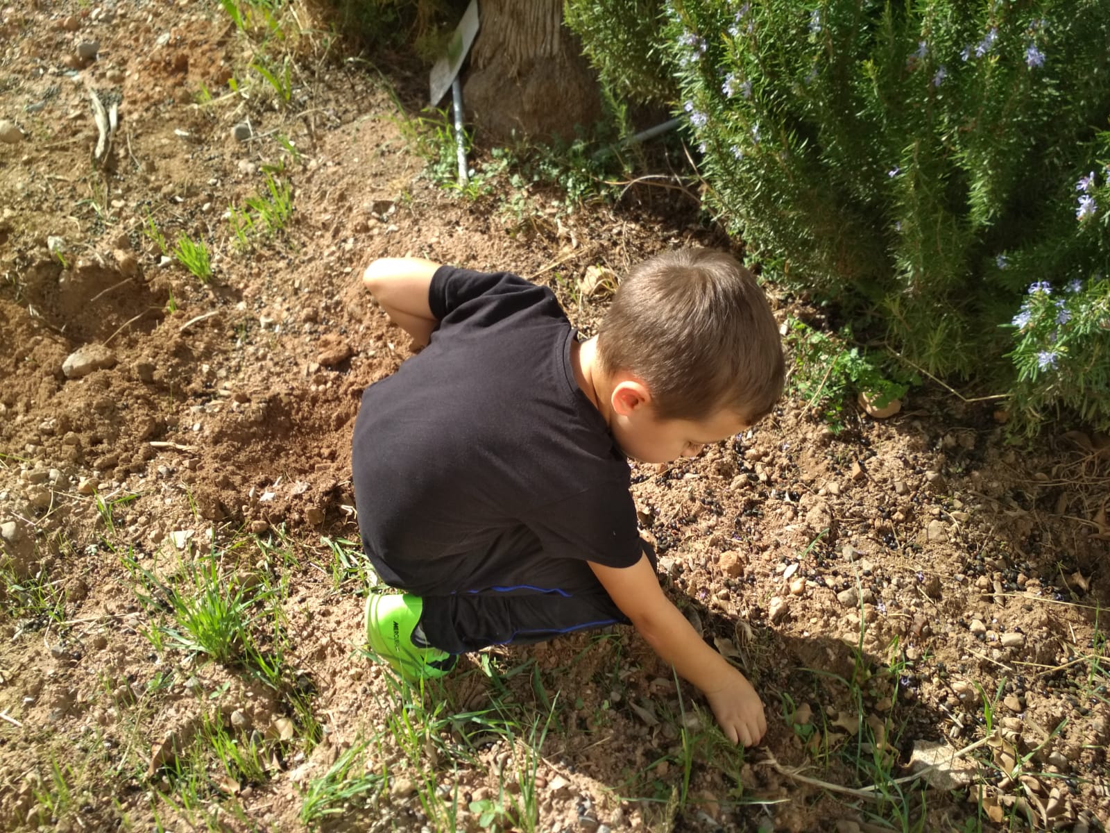 Al día siguiente, el alumnado de 3º se disponía a plantar sus habas (semillas color oscuro)